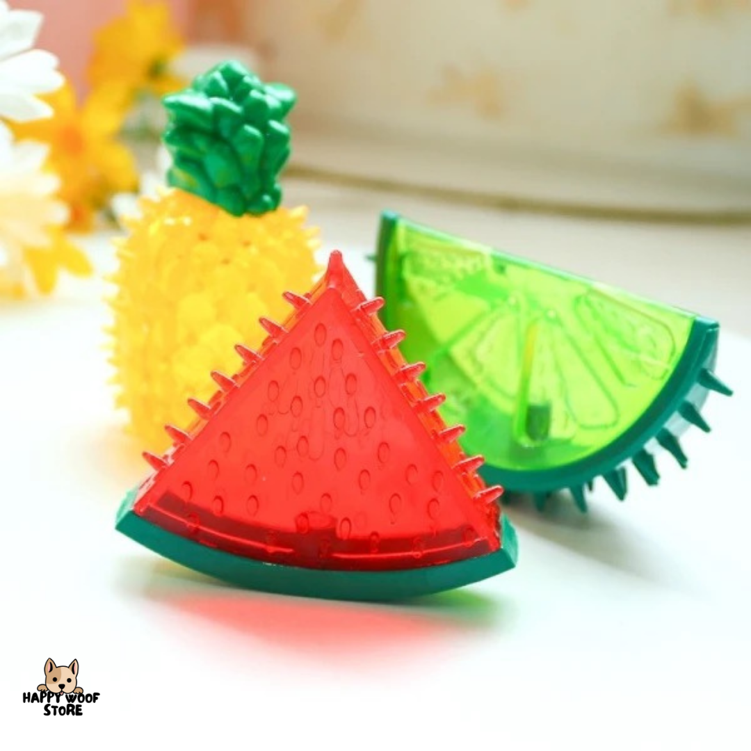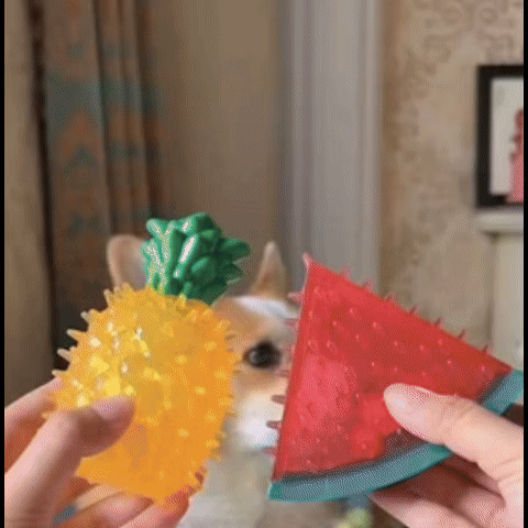 Bu oyuncak, köpeğinizin diş çıkarma dönemi dahil eğlenmesini ve rahatlamasını sağlayan özel bir tasarımdır. 🌟 Meyve şekilli yapısı ile köpeğinizin dikkatini çeker ve diş etlerine masaj yapar.