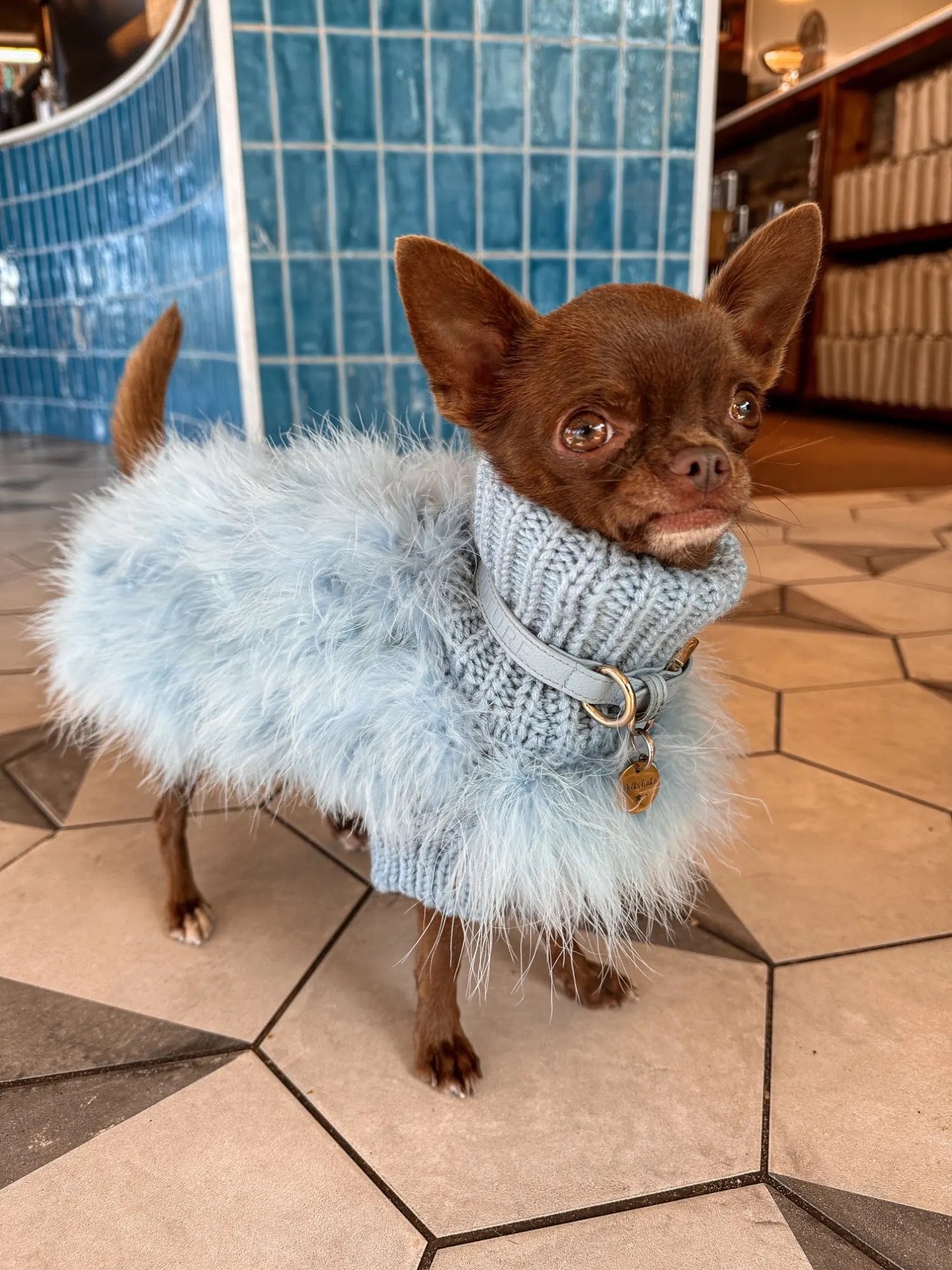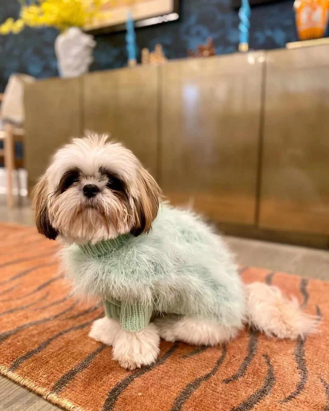 Boğazlı bir hırka nasıl olur dedim köpekler için ama bir de tüylü olması daha da tatlılaştırdı işi🥰