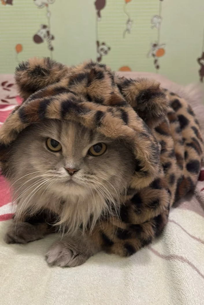Leopar desenli olan tam bir moda ikonu gibi duruyor! ❤️