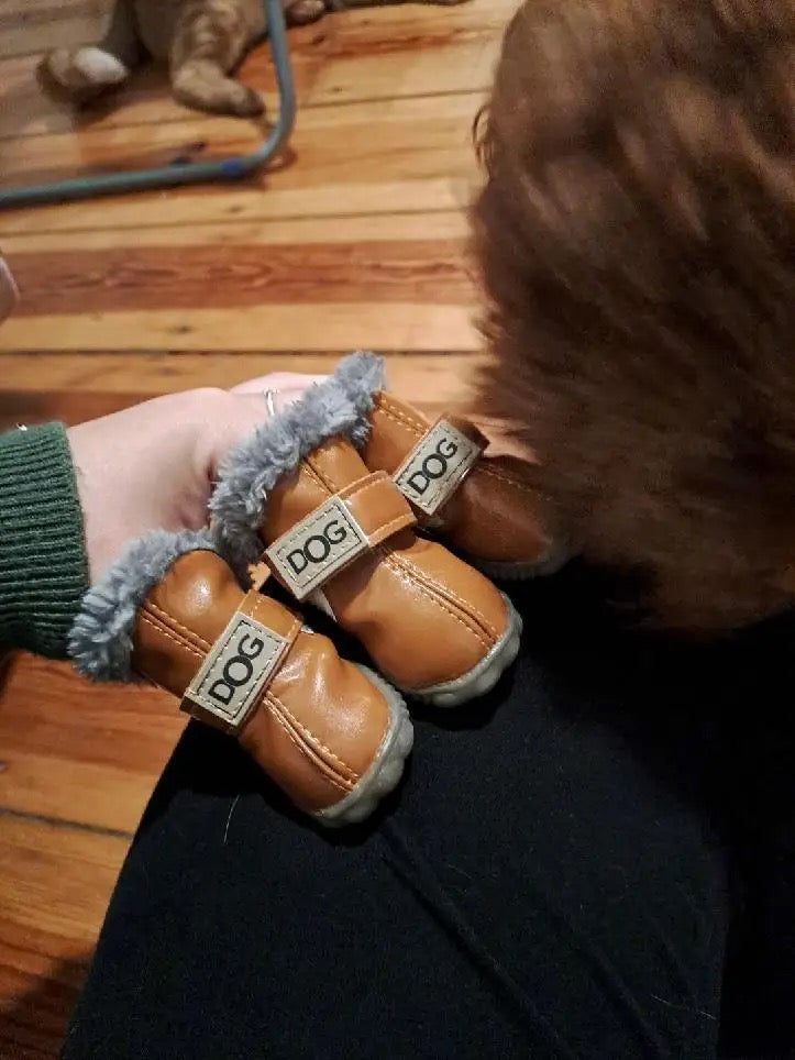 Su Geçirmez Bot, köpeğinizin patilerini yağmurda ve karda korurken, ona şık bir görünüm kazandırır. 🌟 İç kısmı polarlı, dışı su geçirmez deri ile üretilmiştir, böylece soğuk havalarda köpeğinizi sıcak tutar.