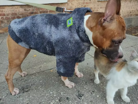 Bu yumuşacık peluş köpek montu, soğuk kış günlerinde evcil dostlarınızı sıcacık tutmak için özel olarak tasarlandı. Peluş dokusu, konforu artırırken aynı zamanda şıklığı da garanti eder. Köpeğiniz üşümeden keyifli yürüyüşler yapabilir! ❄️🐾